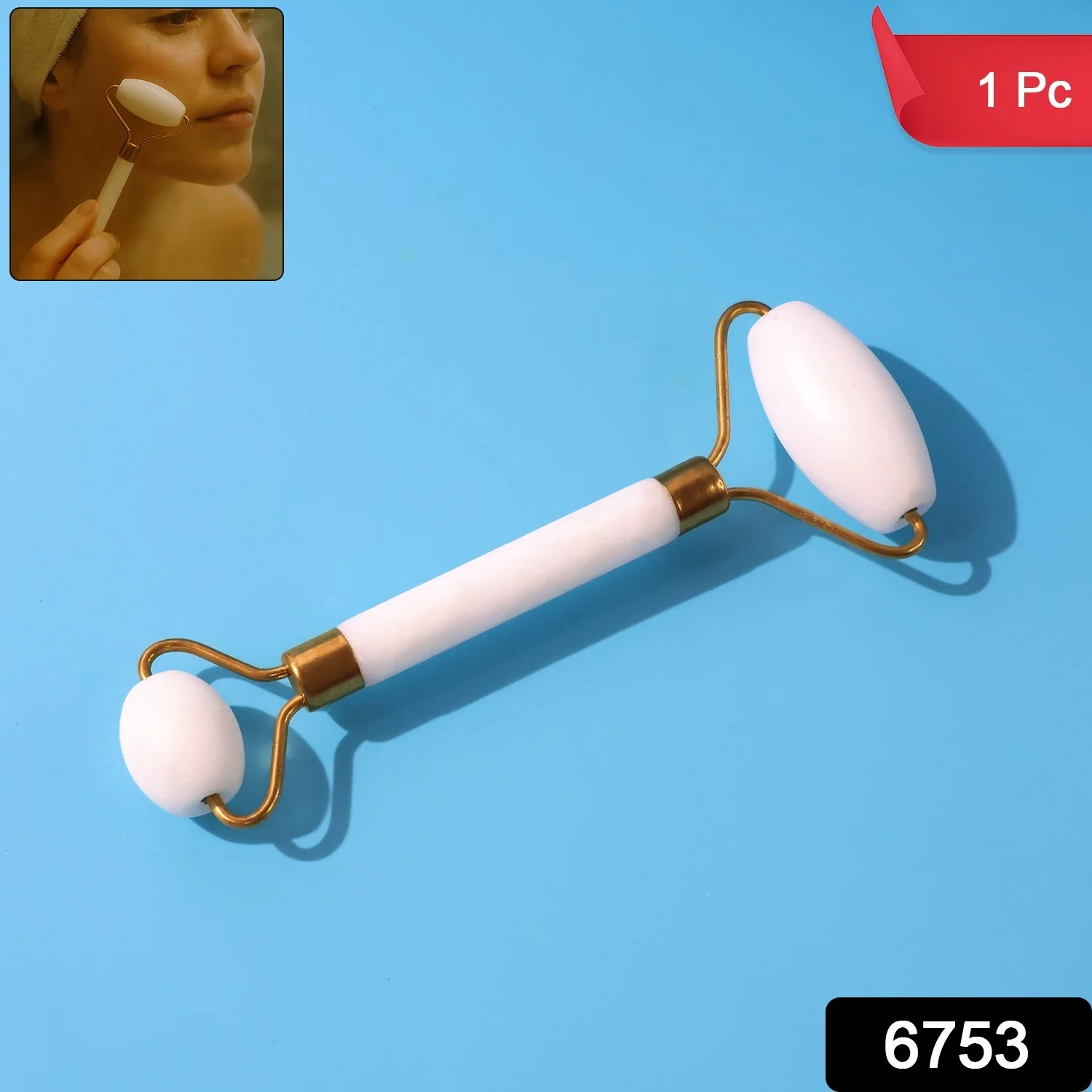 Pamper your skin with a calming, spa-like facial massage at home. This dual-ended face massage roller features a smooth cooling stone mounted on a sturdy metal frame to help reduce the look of puffiness, improve micro-circulation, and enhance absorption of face oils, serums, and moisturizers. Use the large roller to sweep across cheeks, forehead, neck and décolletage, while the small precision roller gently targets the under-eye and nose areas. The action is quiet, soothing, and non-invasive—ideal for your morning de-puff routine and a relaxing night ritual.