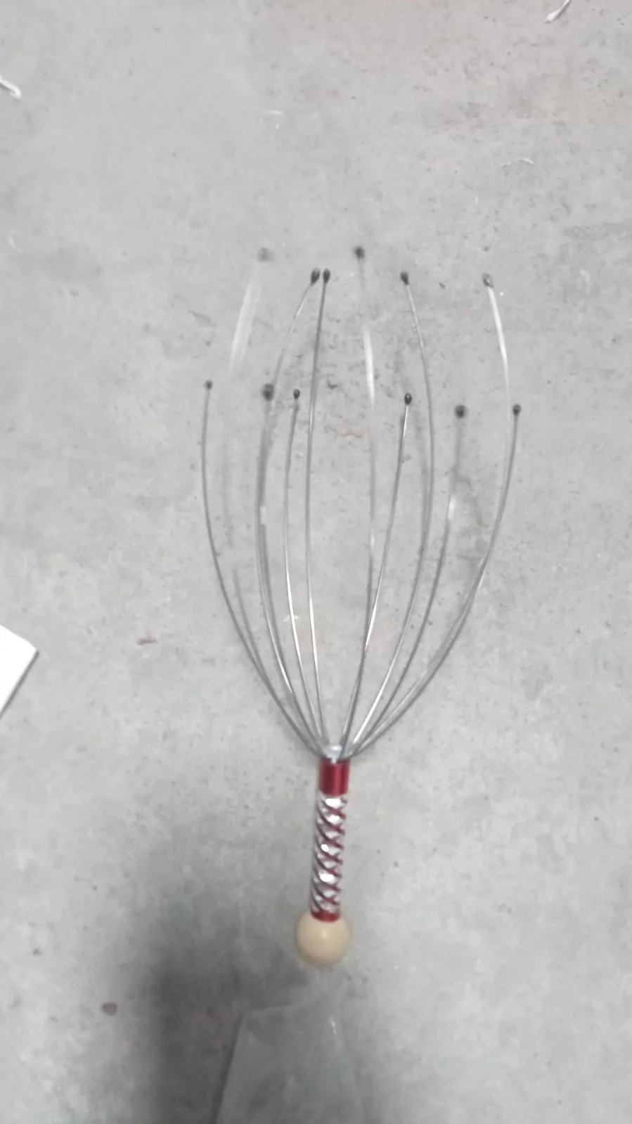 Relieves stress, feels great. Light weight manual massager, ideal for health care. The massage tips are made of solid synthetic resin which bonds exceptionally well to the stainless steel wire and is very smooth textured. Easy to use this lightweight scalp massager titillates nerve endings in the scalp as you hold the handle above your head and allow the smooth resin tips of the multi-length wire fingers to delicately pass over your scalp. The relaxing and tingling effect transcends from the head to lower limbs and extremities creating a holistic sensation. No batteries are required – this is a manual massager.