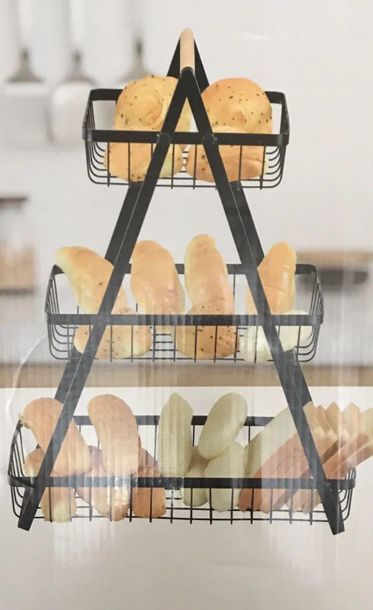 - 3-Tier Countertop Basket: The Basket is perfect for holding both fruits and vegetables, keeping your space organized, and doesn’t take up too much countertop space.